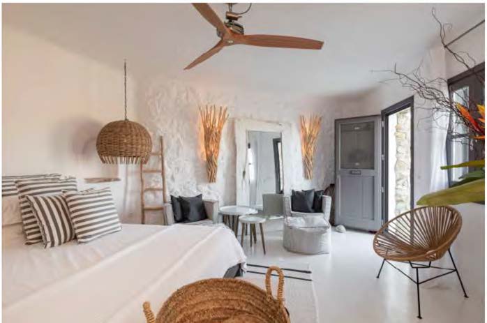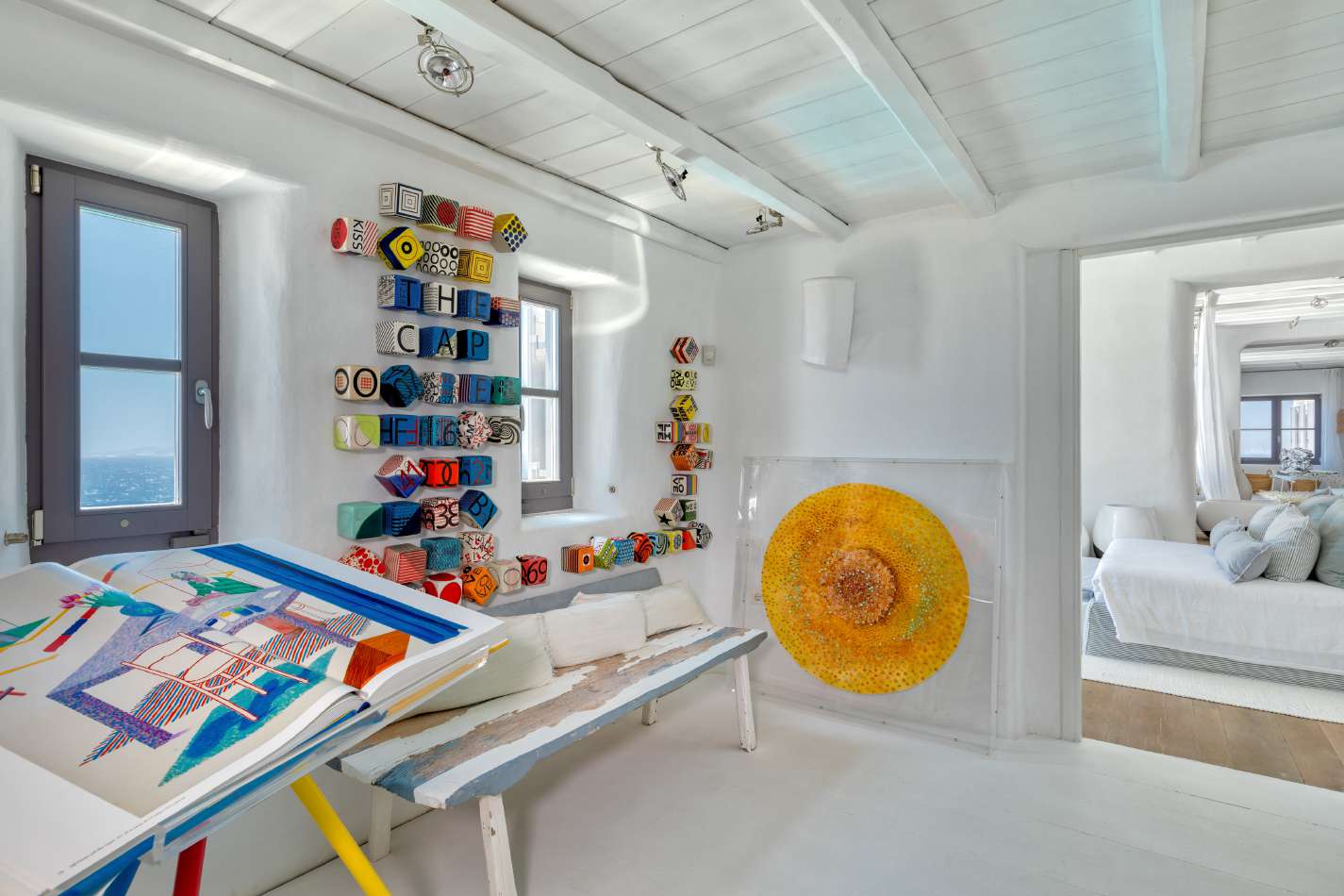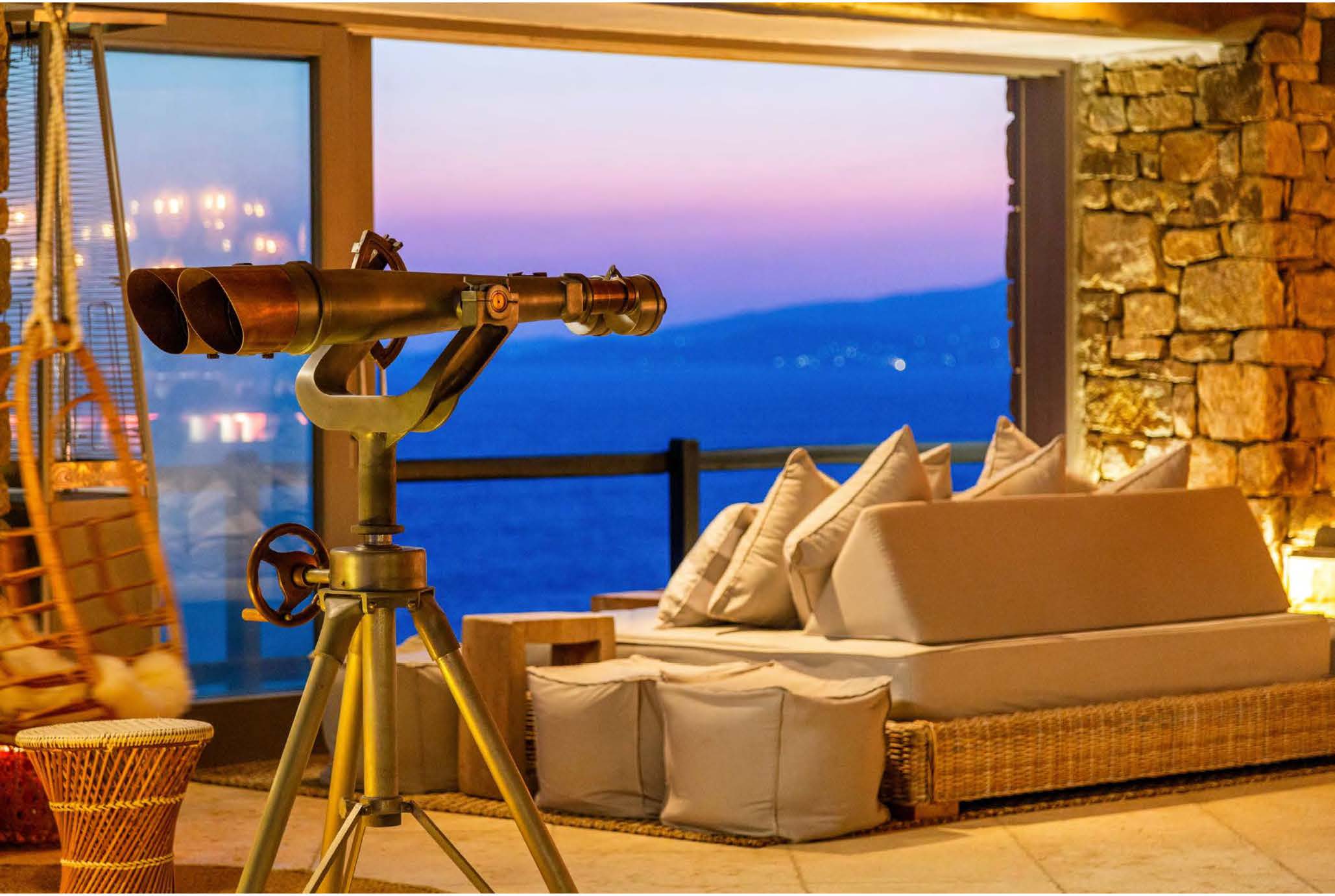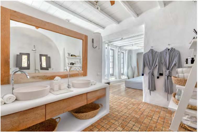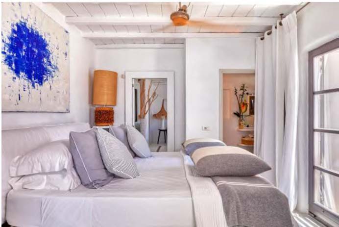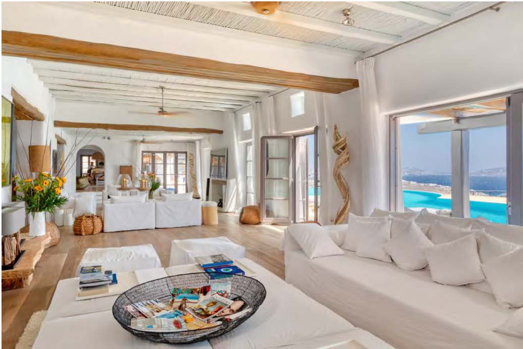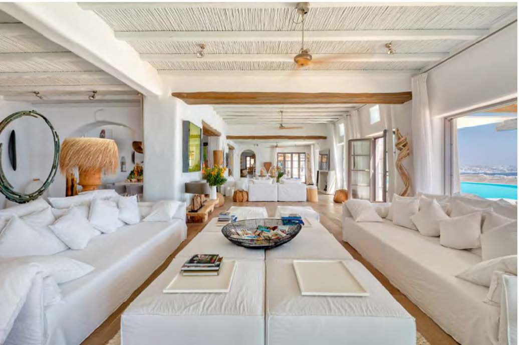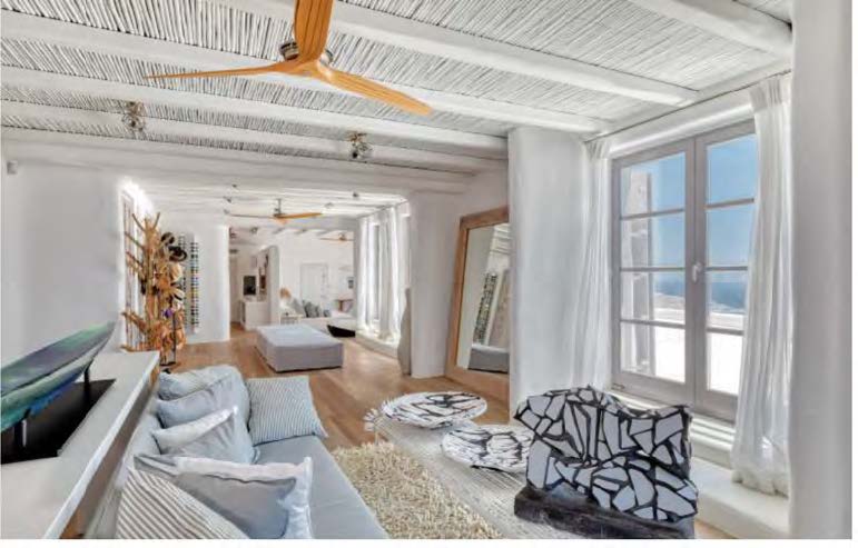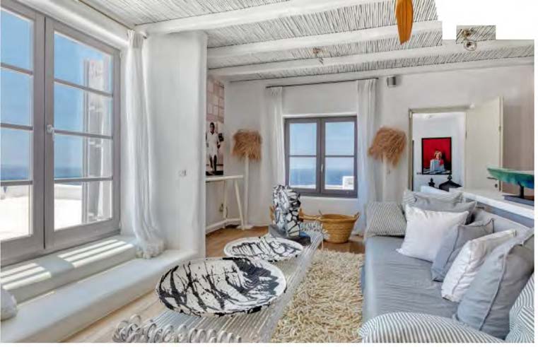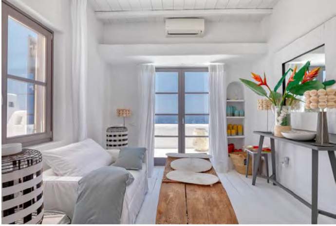 A second lounge area – direct access to a large sunset terrace| spectacular view of the Aegean sea. - Room 2: Master bedroom with king-size bed, dressing room, [A/C], en-suite bathroom with shower room – direct access to a large private terrace via balcony doors | outstanding view.