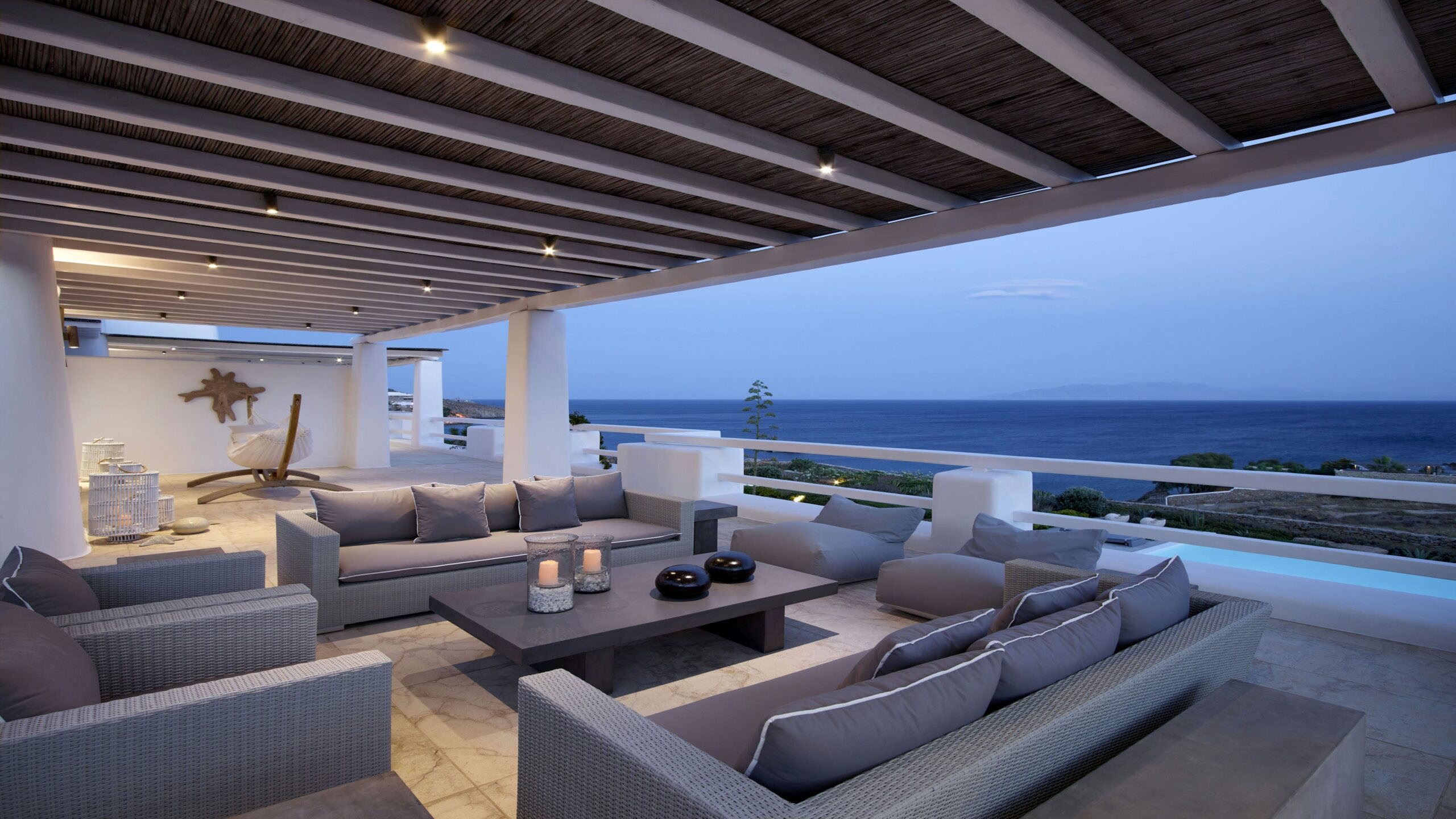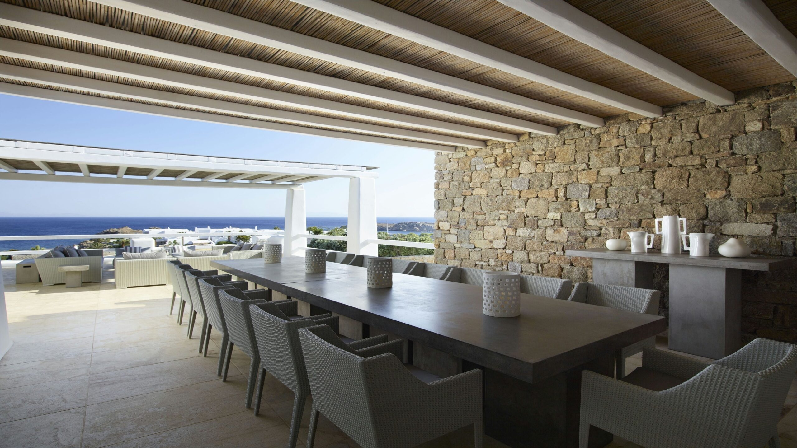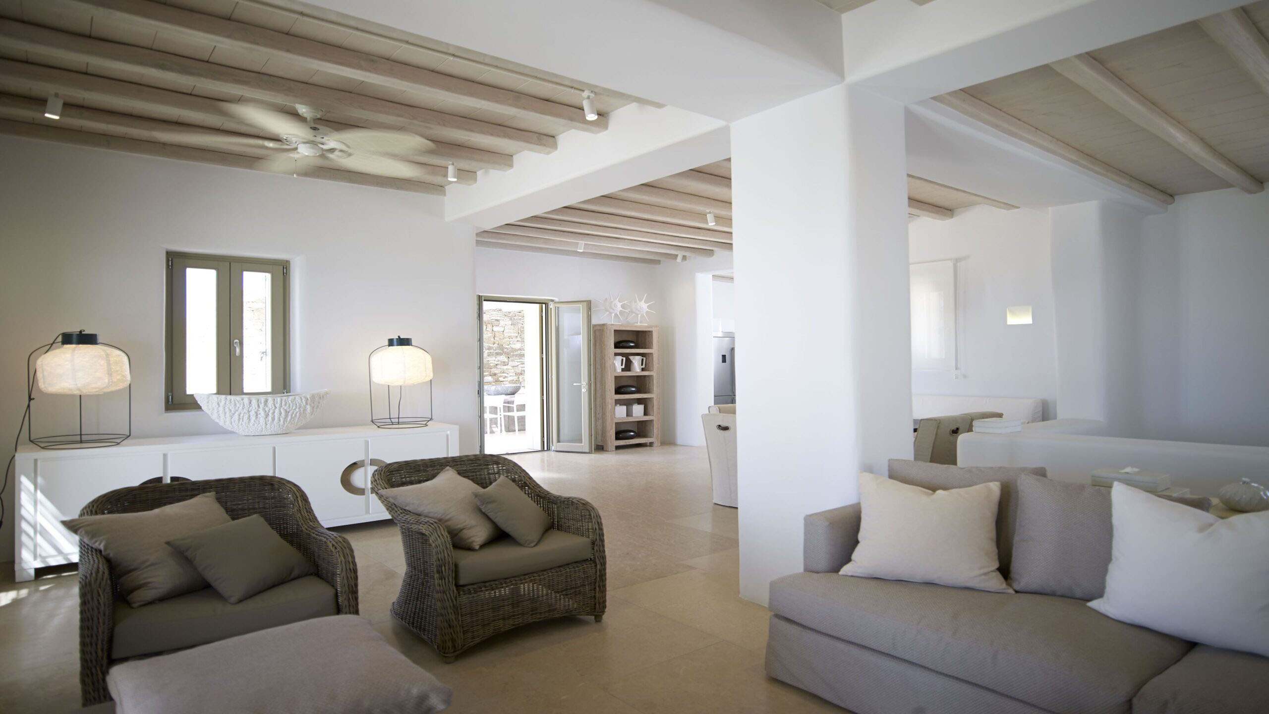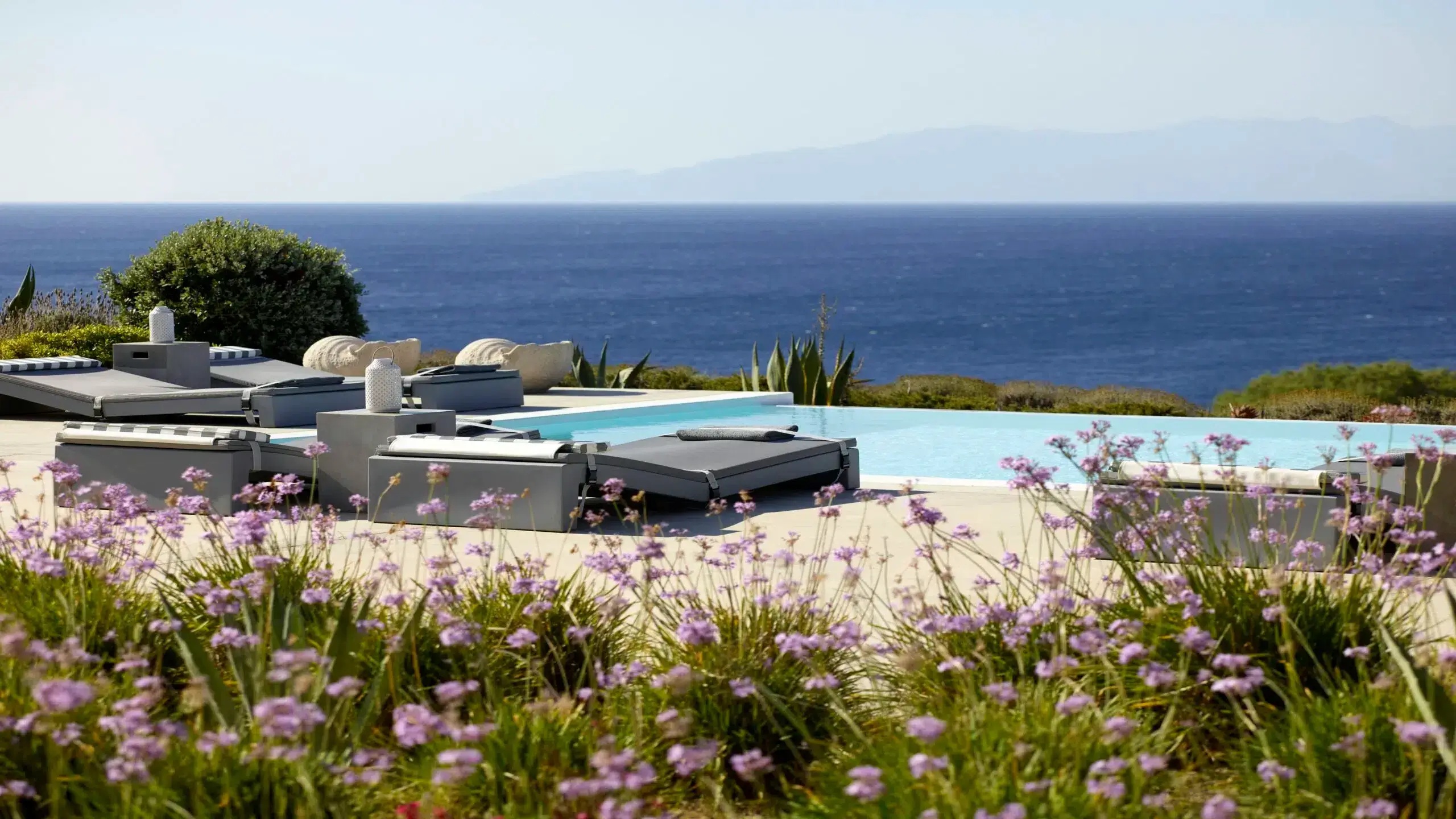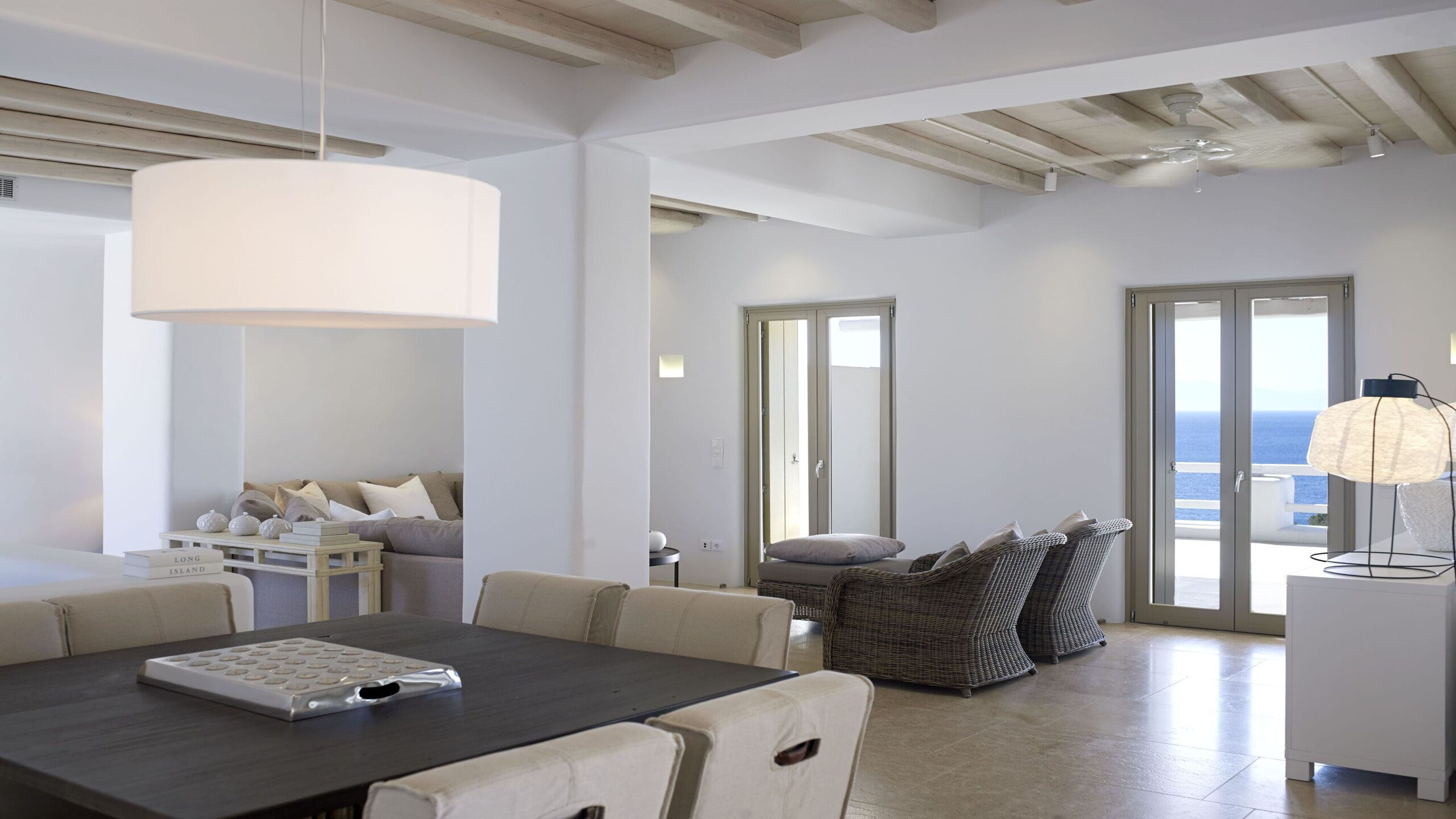 Luxury Villa 17.2 is a distinctive seaside retreat in southern Mykonos, offering panoramic views of the Aegean Sea and the nearby islands of Paros and Naxos. Set within a private bay, the property combines seclusion with easy access to the famous Paradise and Paraga beaches, known for their vibrant atmosphere.