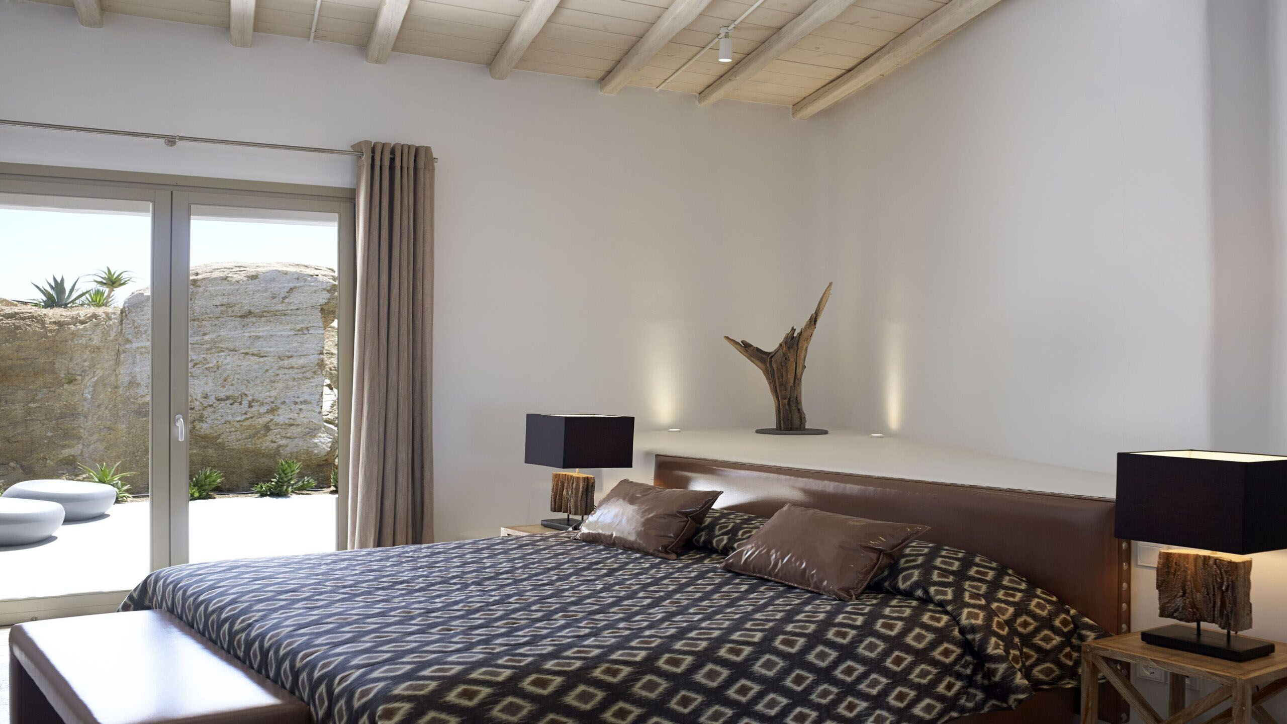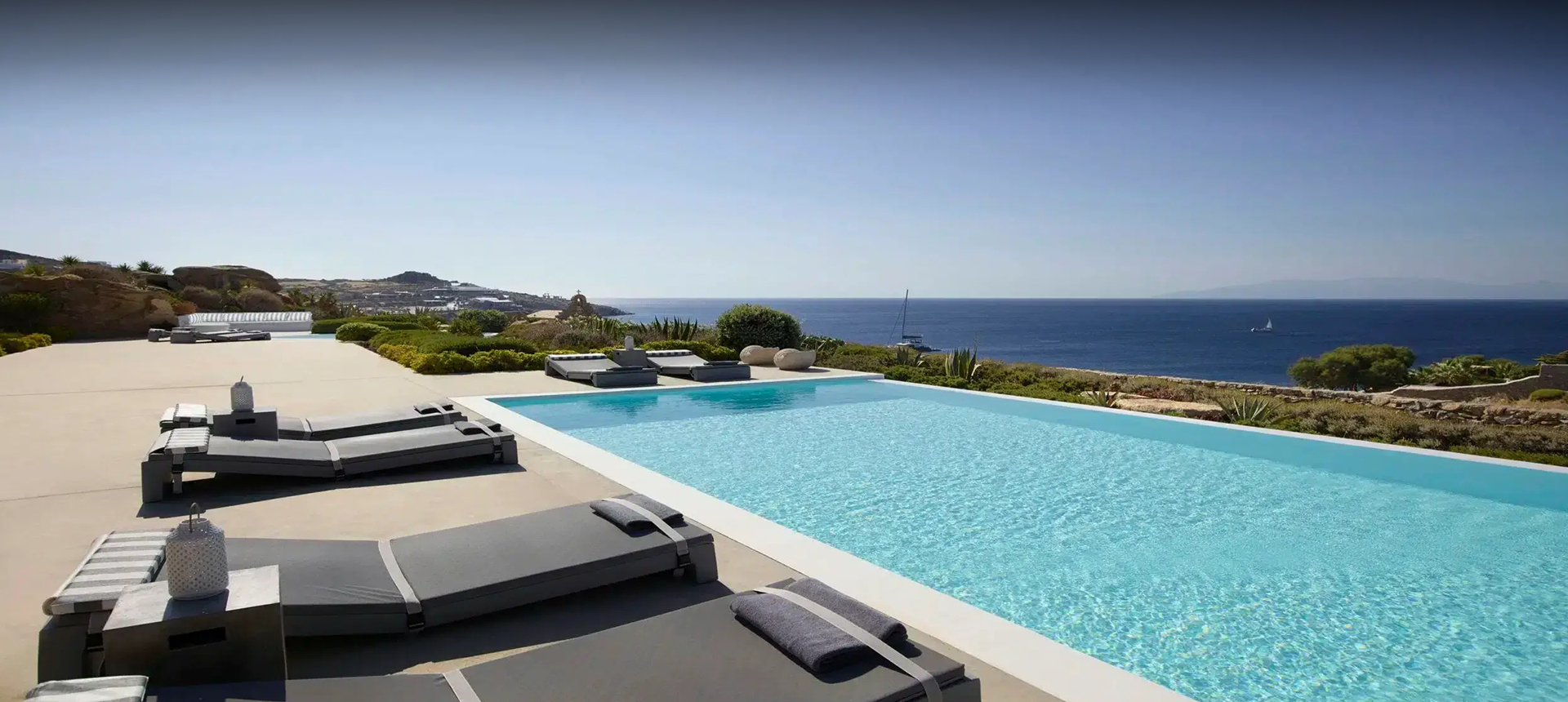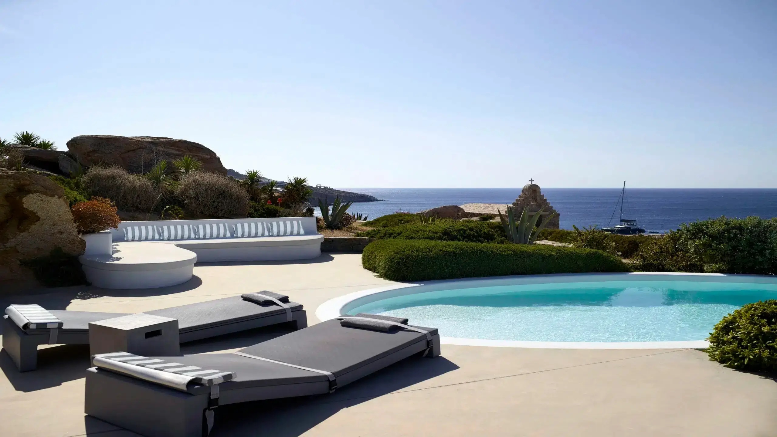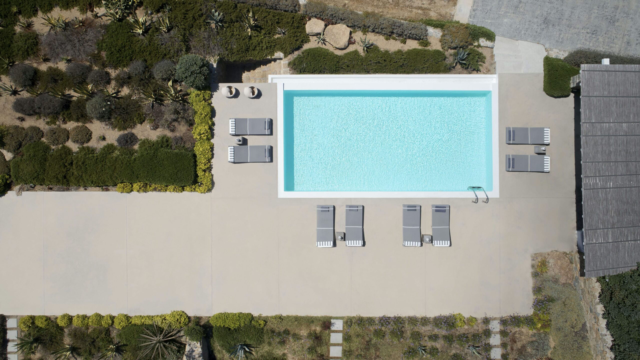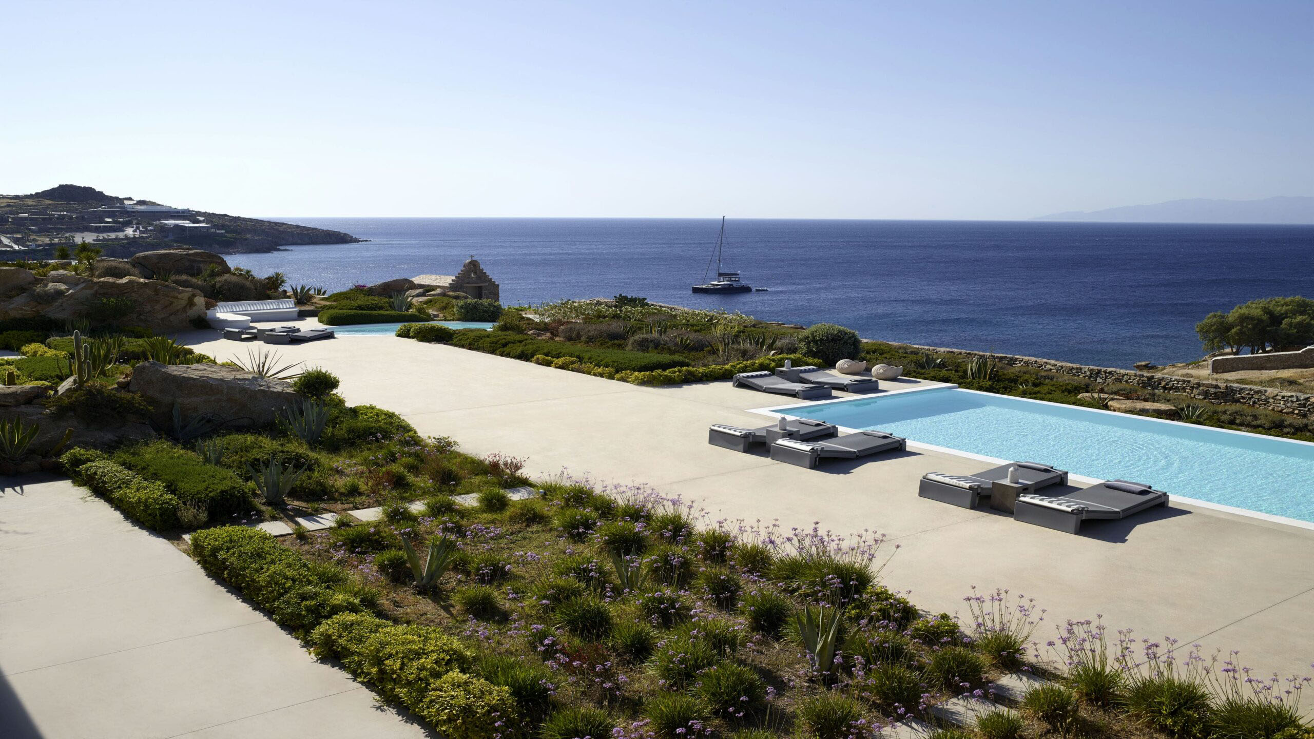 Luxury Villa 17.2 is a distinctive seaside retreat in southern Mykonos, offering panoramic views of the Aegean Sea and the nearby islands of Paros and Naxos. Set within a private bay, the property combines seclusion with easy access to the famous Paradise and Paraga beaches, known for their vibrant atmosphere.