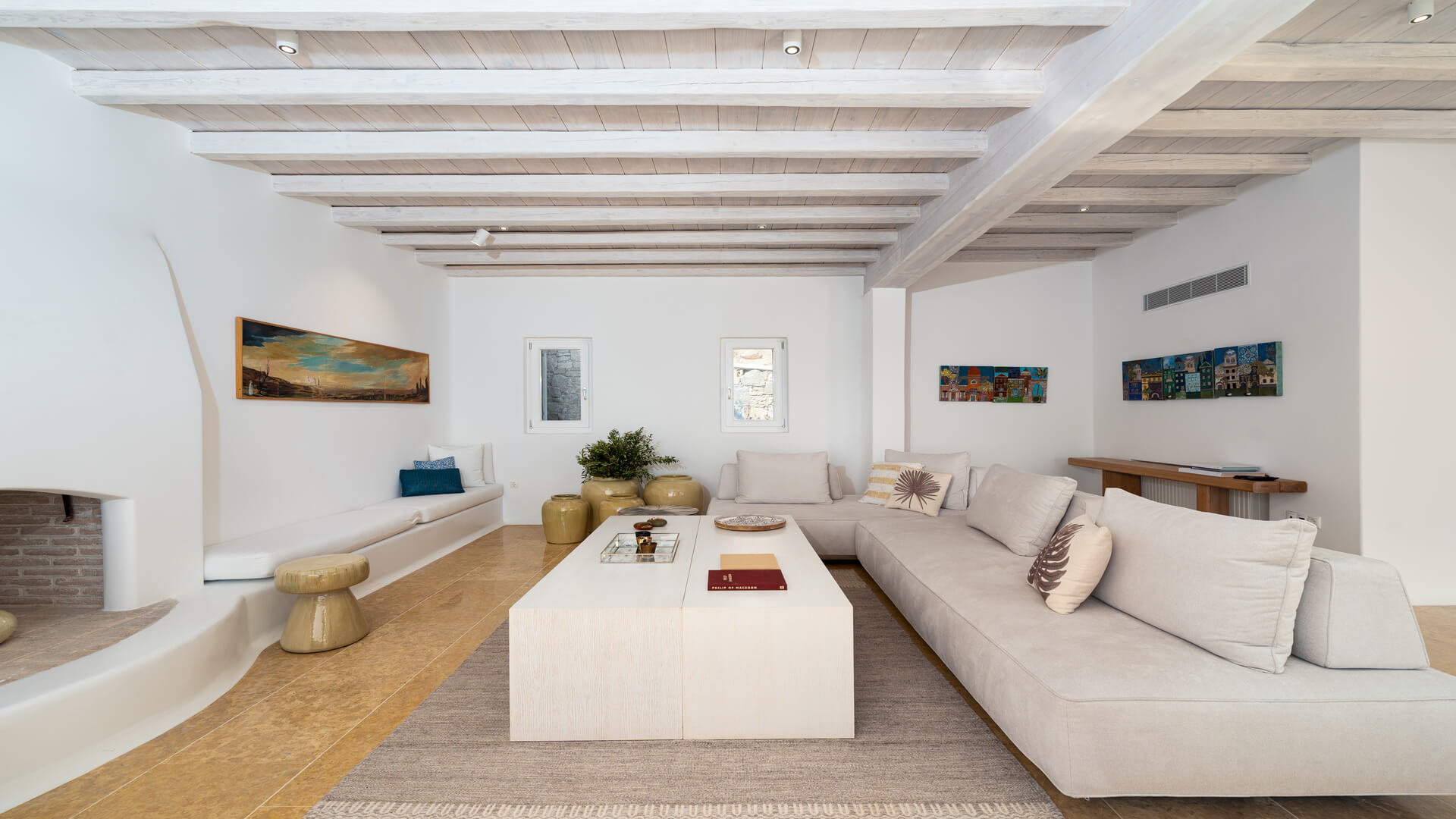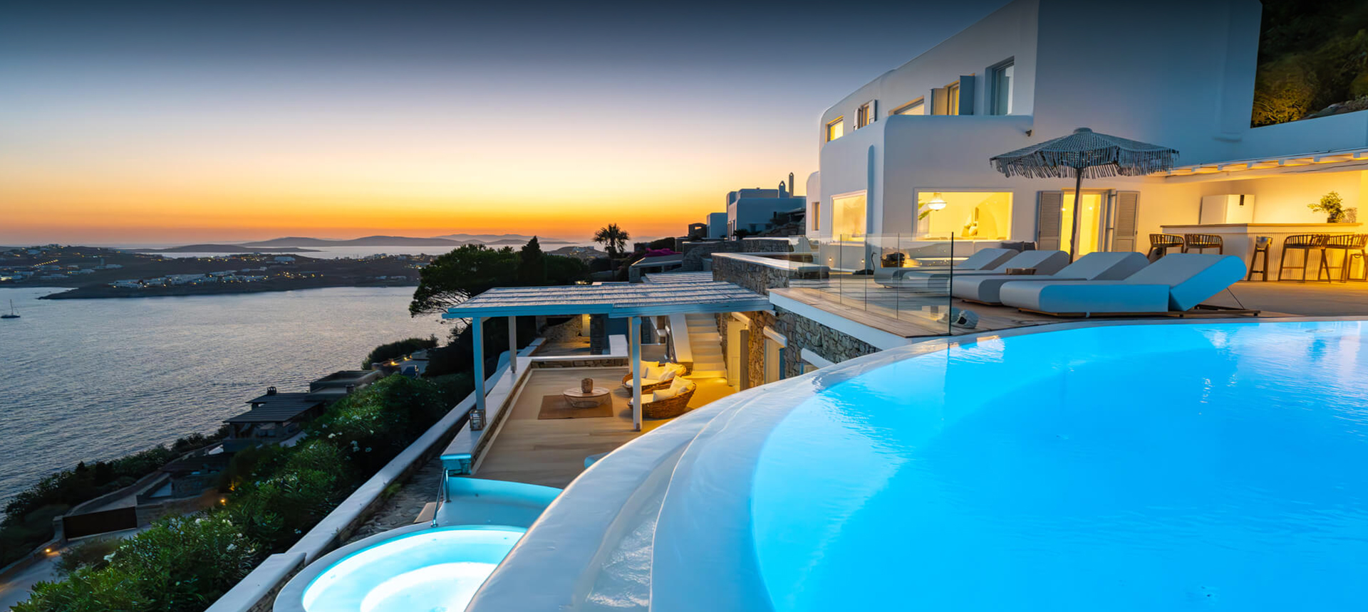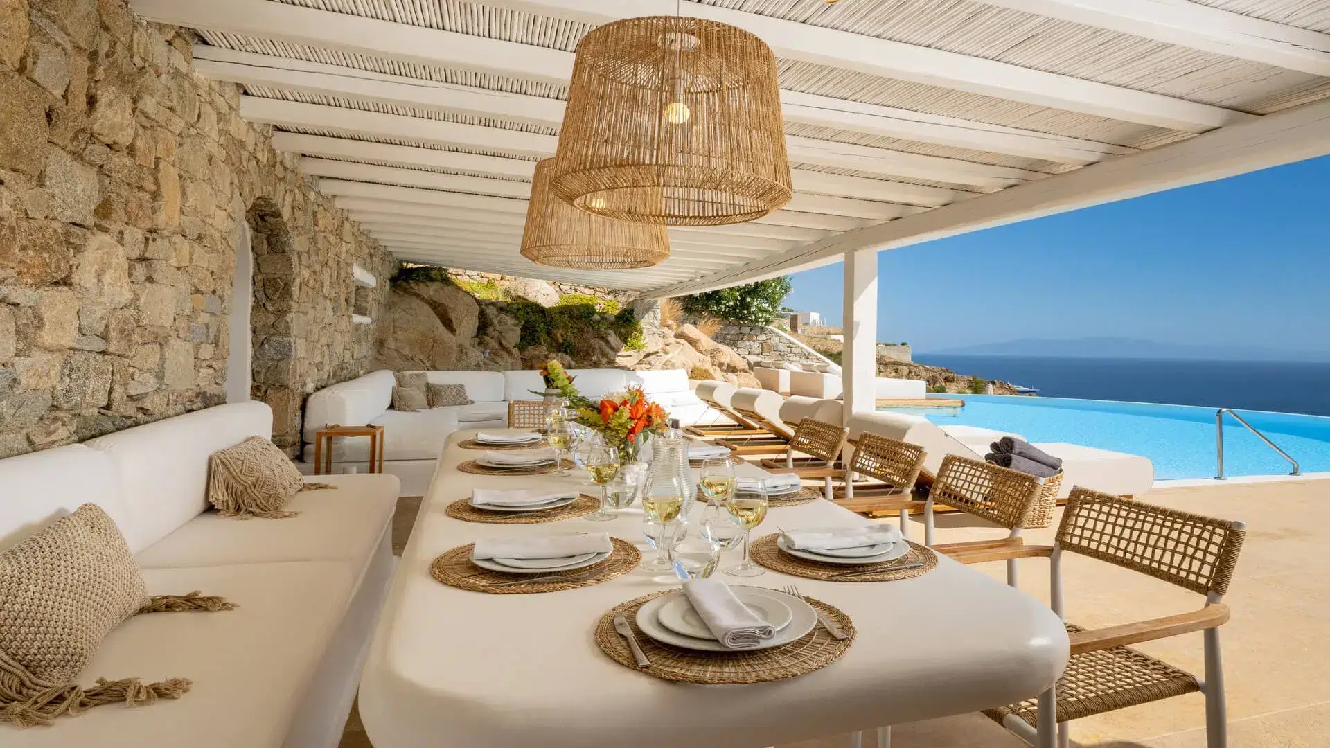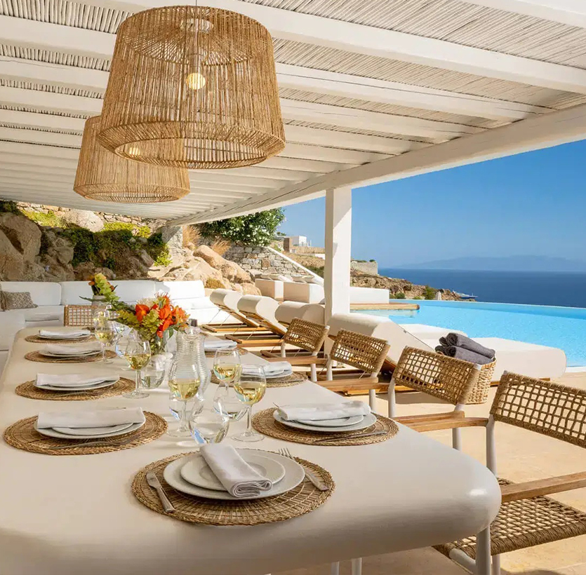 The infinity swimming pool area provides privacy and comfort to its guests where plenty of cozy corners create an unforgettable ambience. The white-washed interiors, decorated to the highest of standards, combine contemporary design with art and luxury. Villa 27.1 is an ultra-exclusive estate, ideal for those who seek top quality time with family and friends.