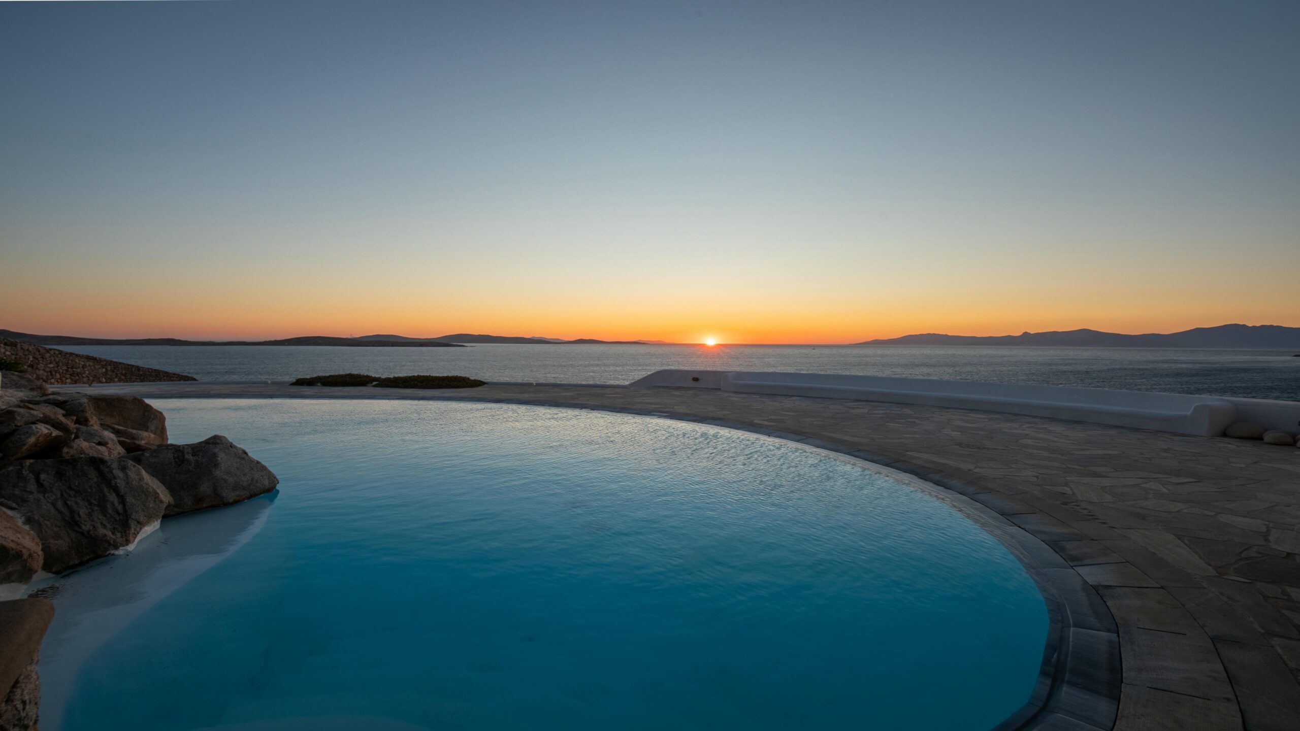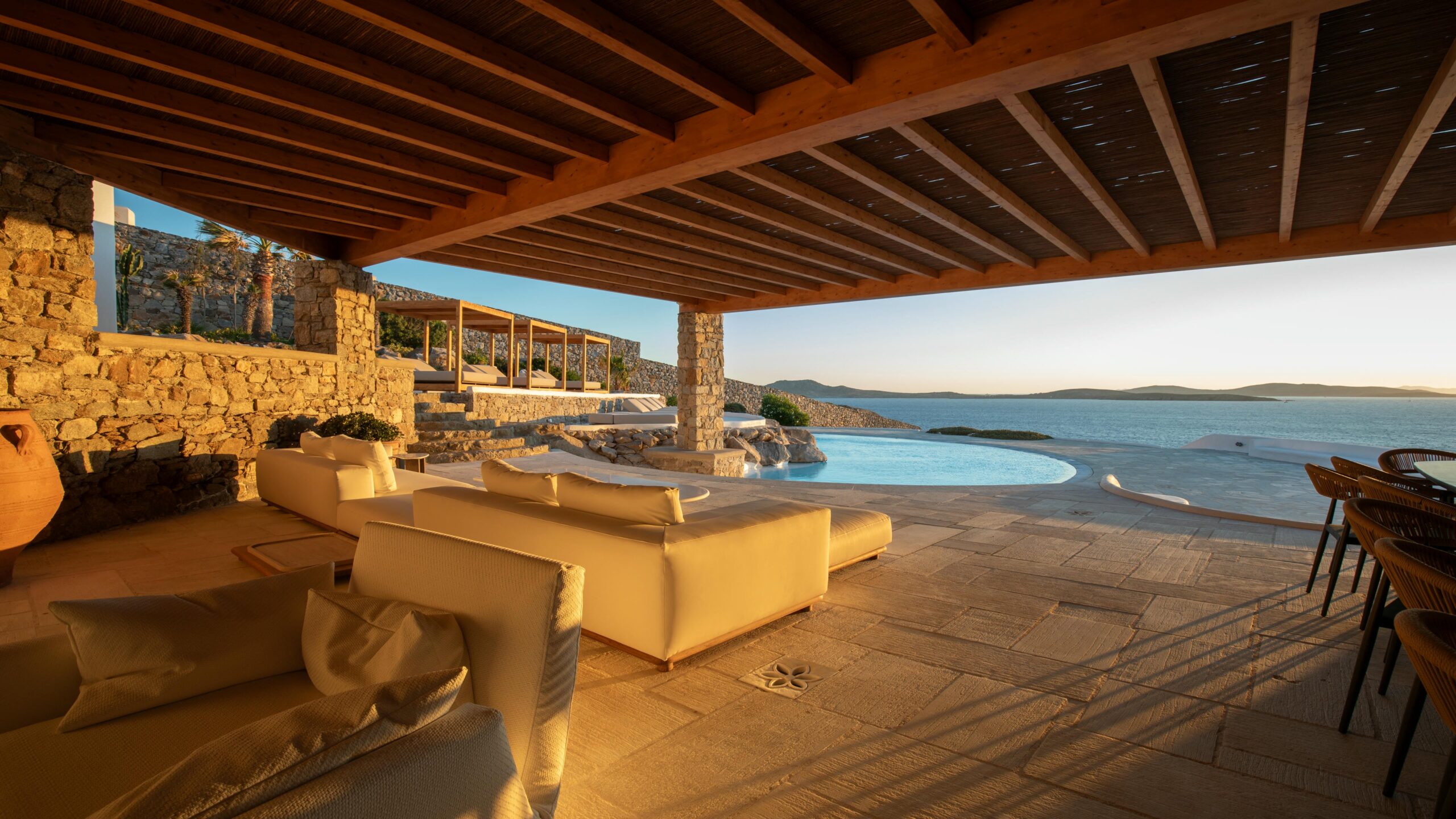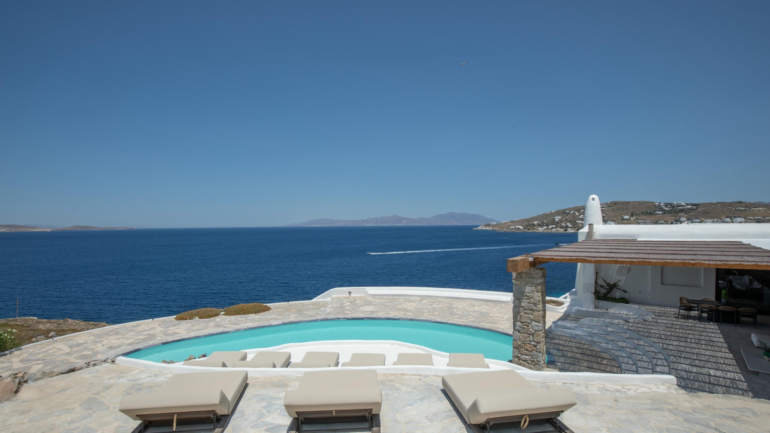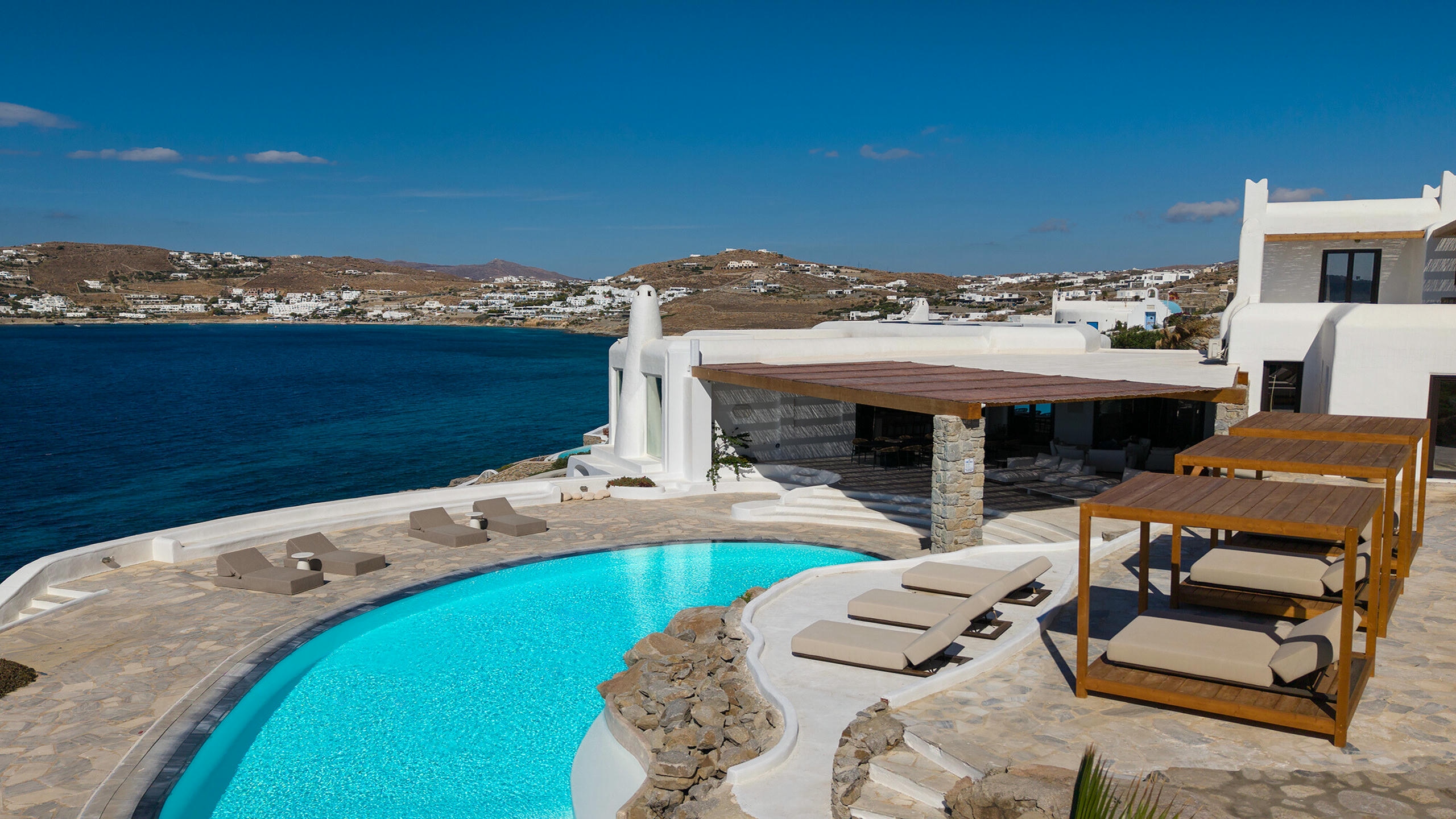 Set on a prime waterfront location in Aleomandra, this elegant villa offers an exceptional Mykonos retreat with uninterrupted views of Delos and spectacular sunsets. Designed across four levels with eight ensuite bedrooms, it combines privacy, sophisticated style, and comfort for up to 16 guests. With expansive terraces, a heated pool, and daily maid service, it delivers a serene yet luxurious island experience.