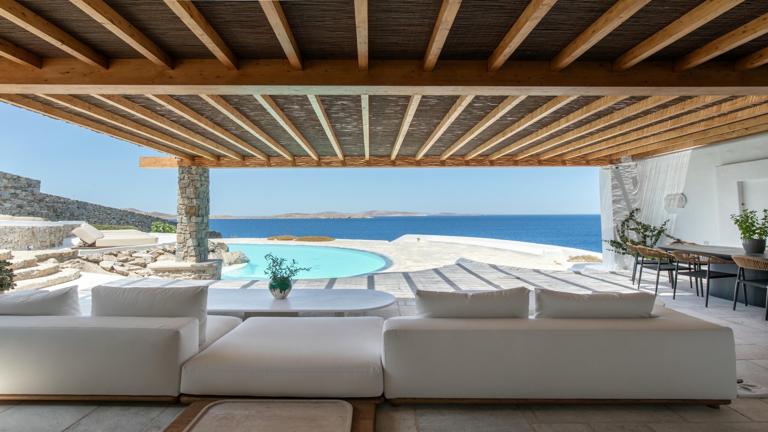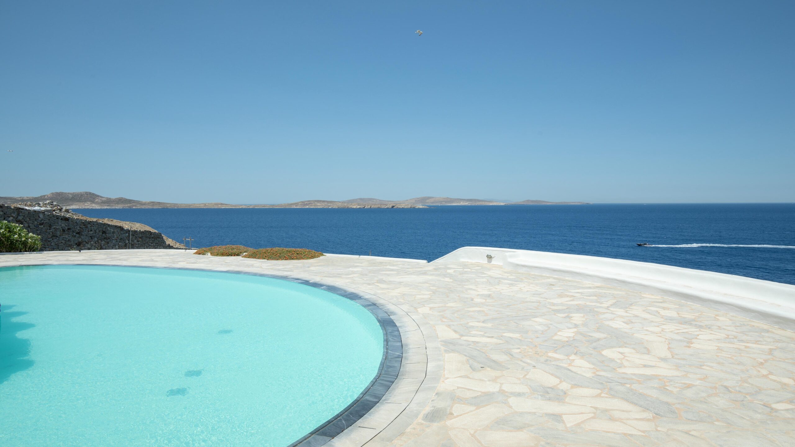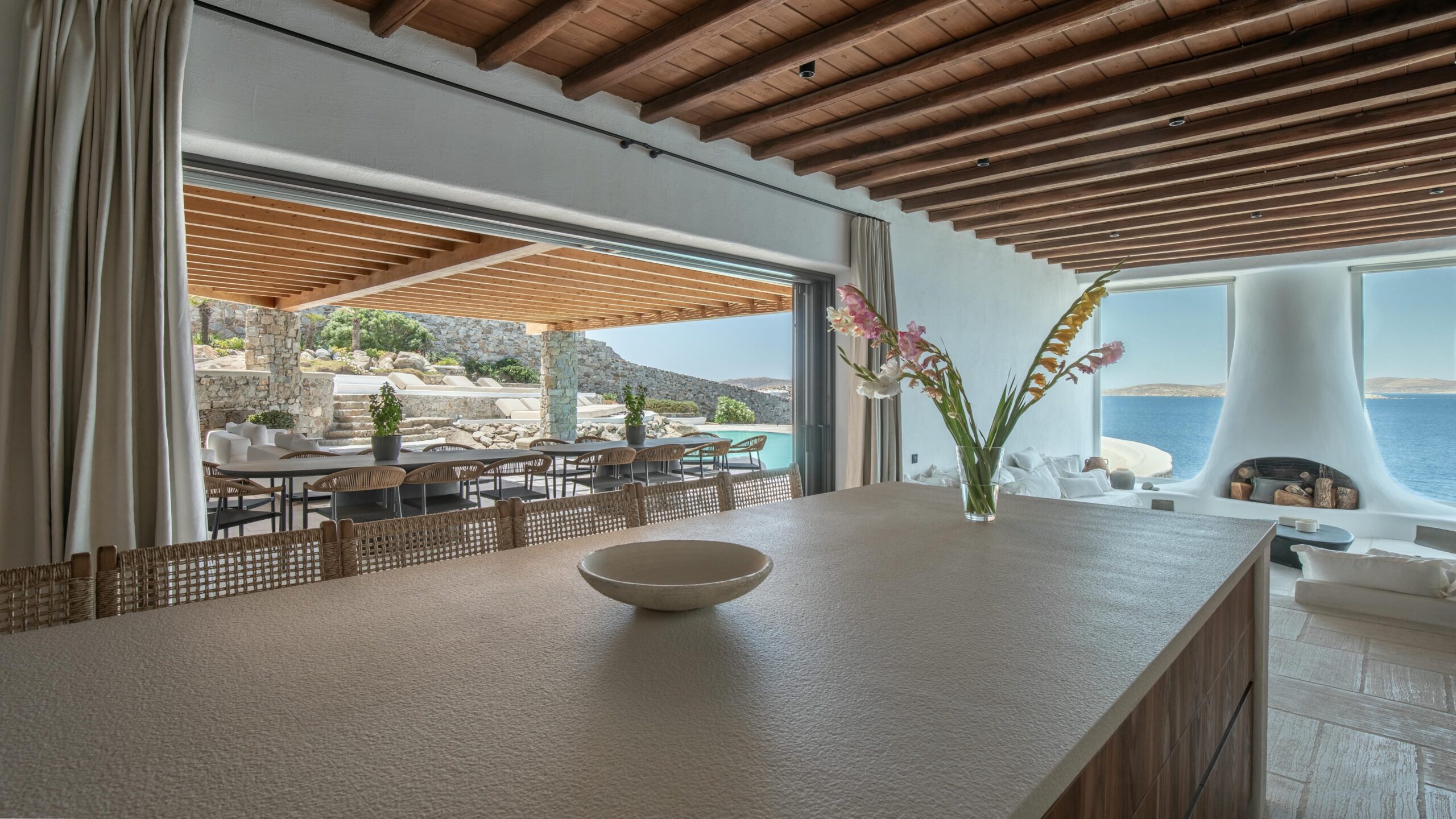 Set on a prime waterfront location in Aleomandra, this elegant villa offers an exceptional Mykonos retreat with uninterrupted views of Delos and spectacular sunsets. Designed across four levels with eight ensuite bedrooms, it combines privacy, sophisticated style, and comfort for up to 16 guests. With expansive terraces, a heated pool, and daily maid service, it delivers a serene yet luxurious island experience.