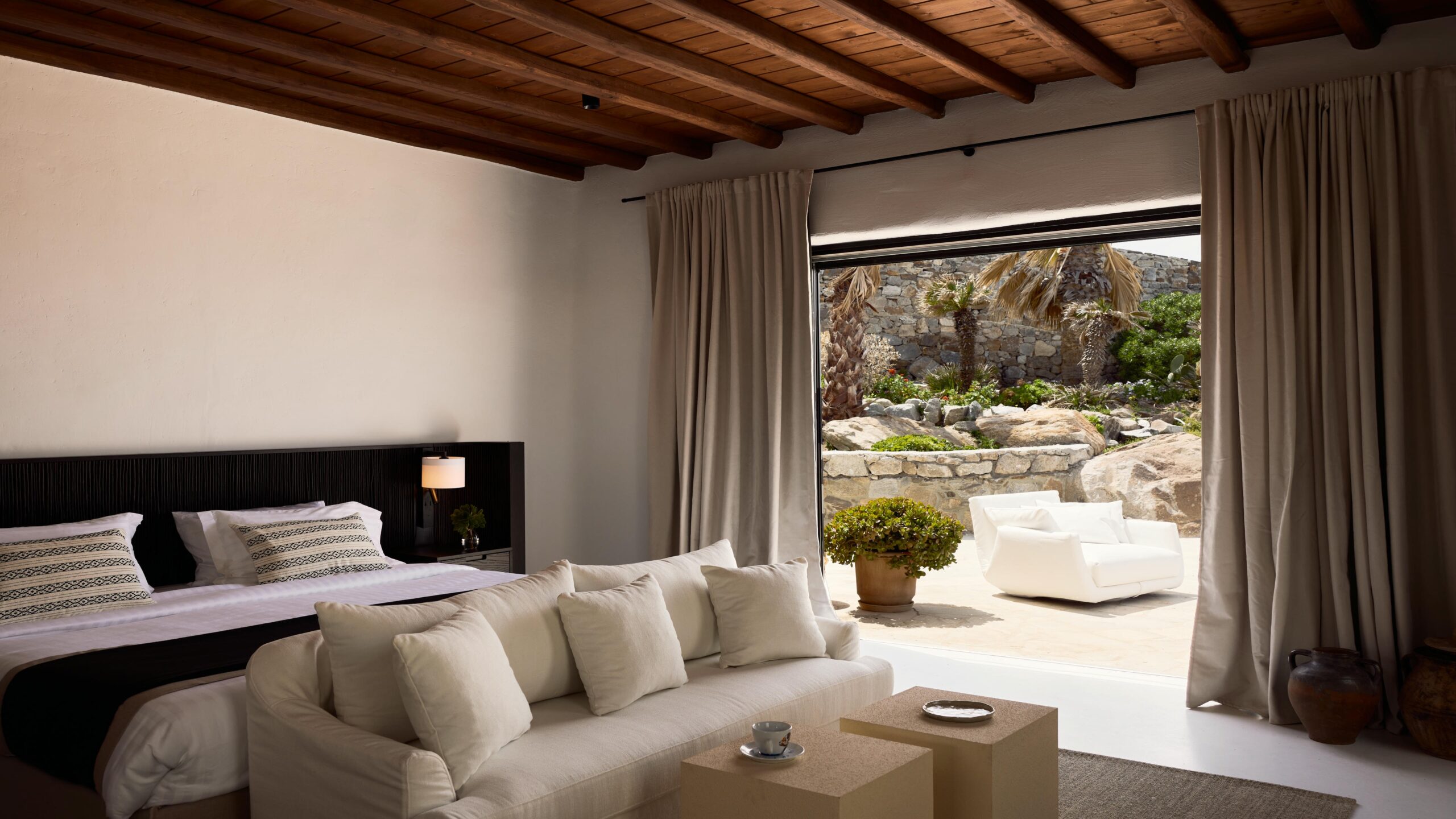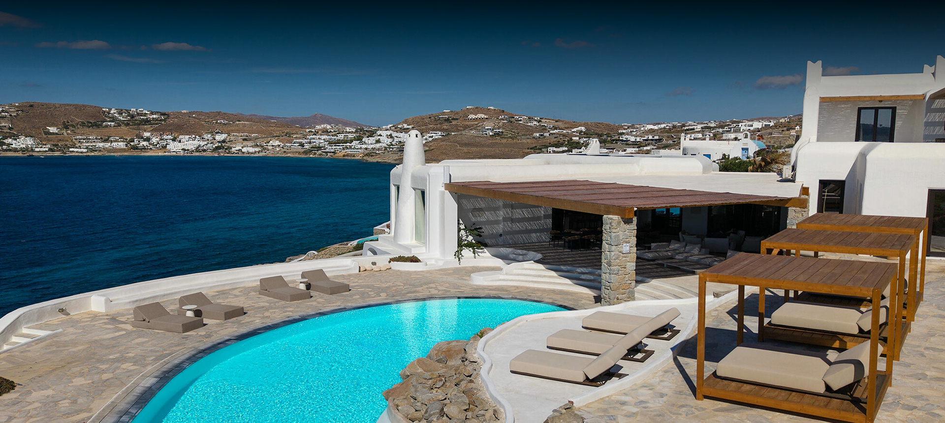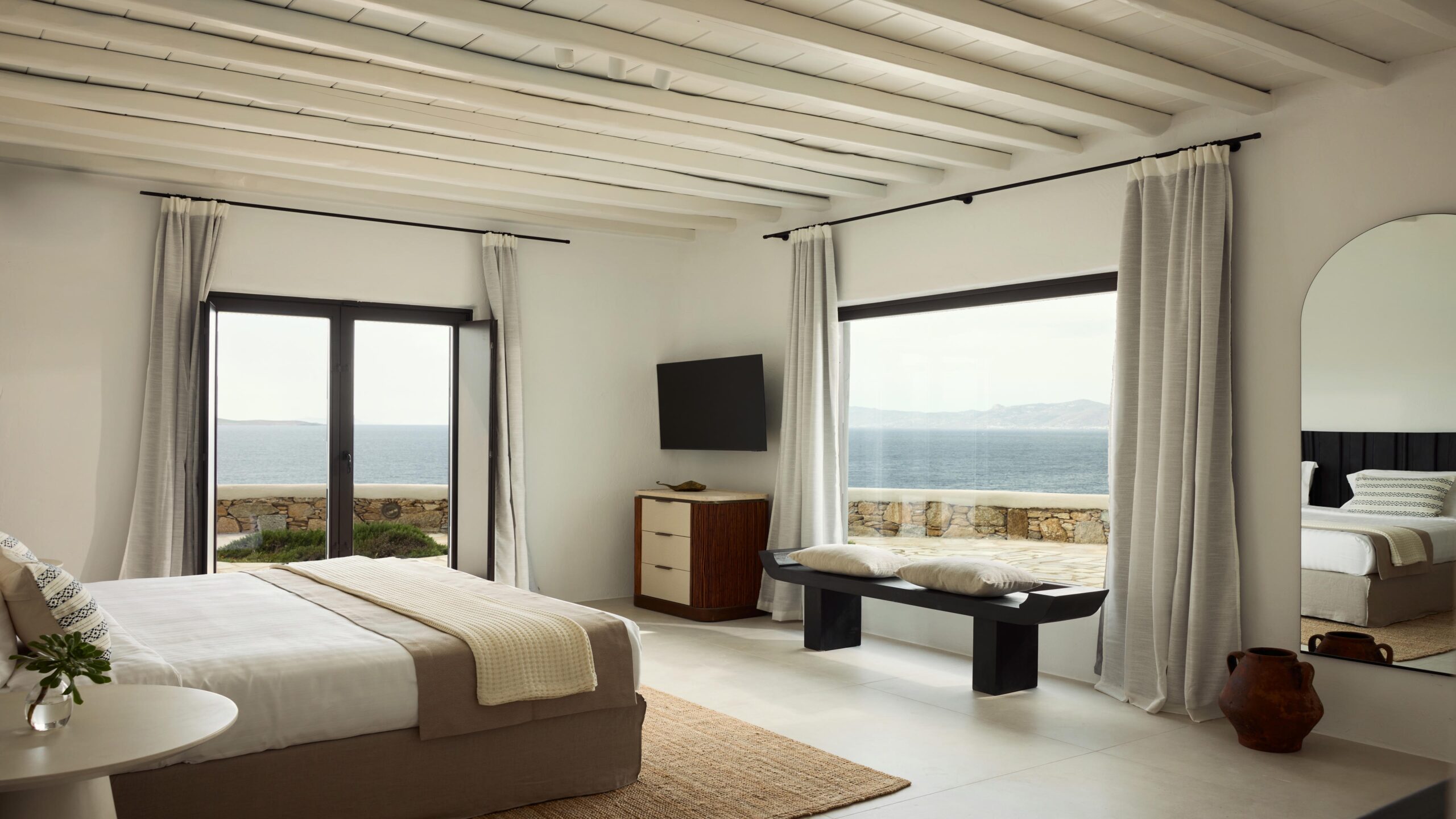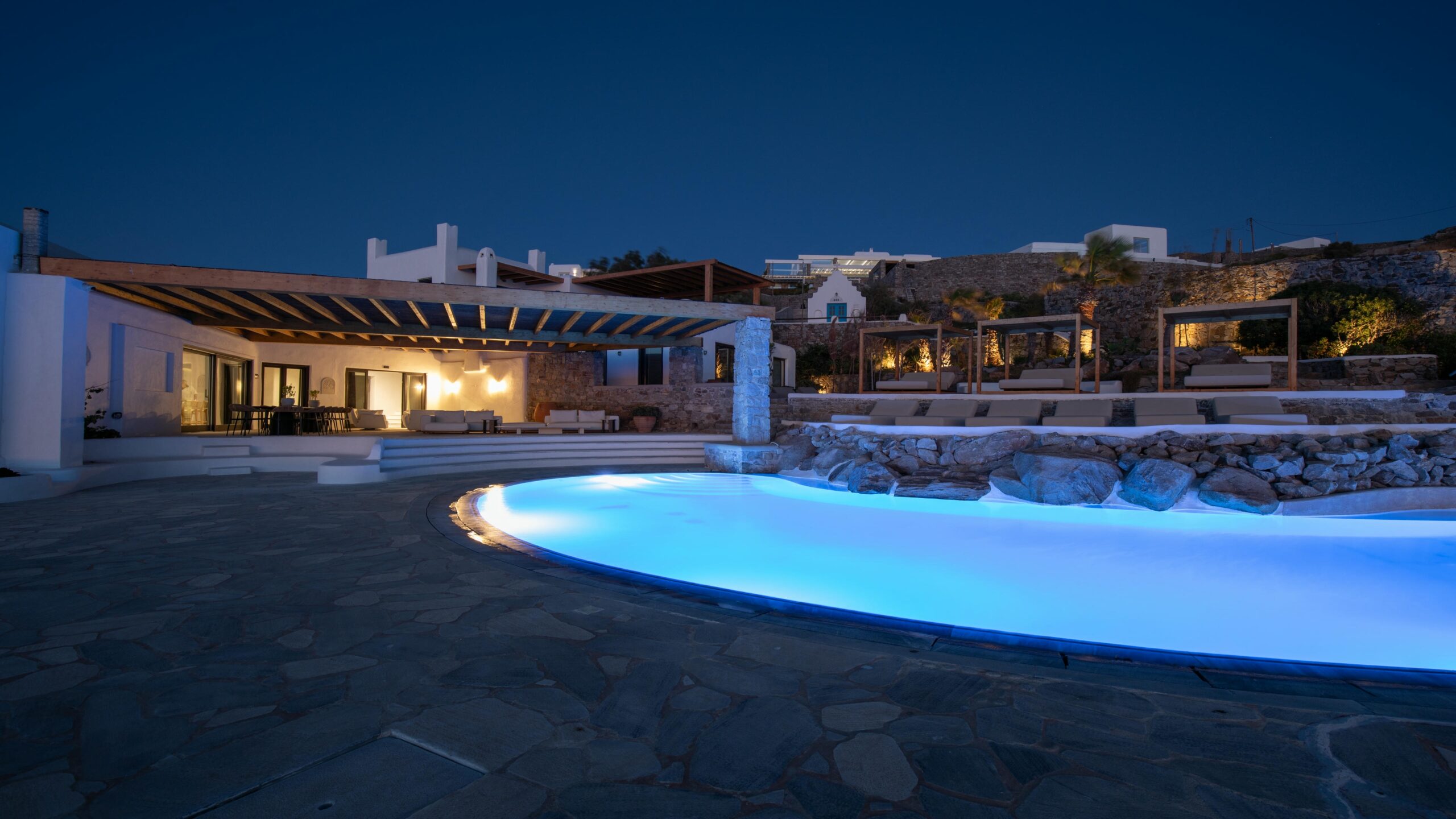 Set on a prime waterfront location in Aleomandra, this elegant villa offers an exceptional Mykonos retreat with uninterrupted views of Delos and spectacular sunsets. Designed across four levels with eight ensuite bedrooms, it combines privacy, sophisticated style, and comfort for up to 16 guests. With expansive terraces, a heated pool, and daily maid service, it delivers a serene yet luxurious island experience.