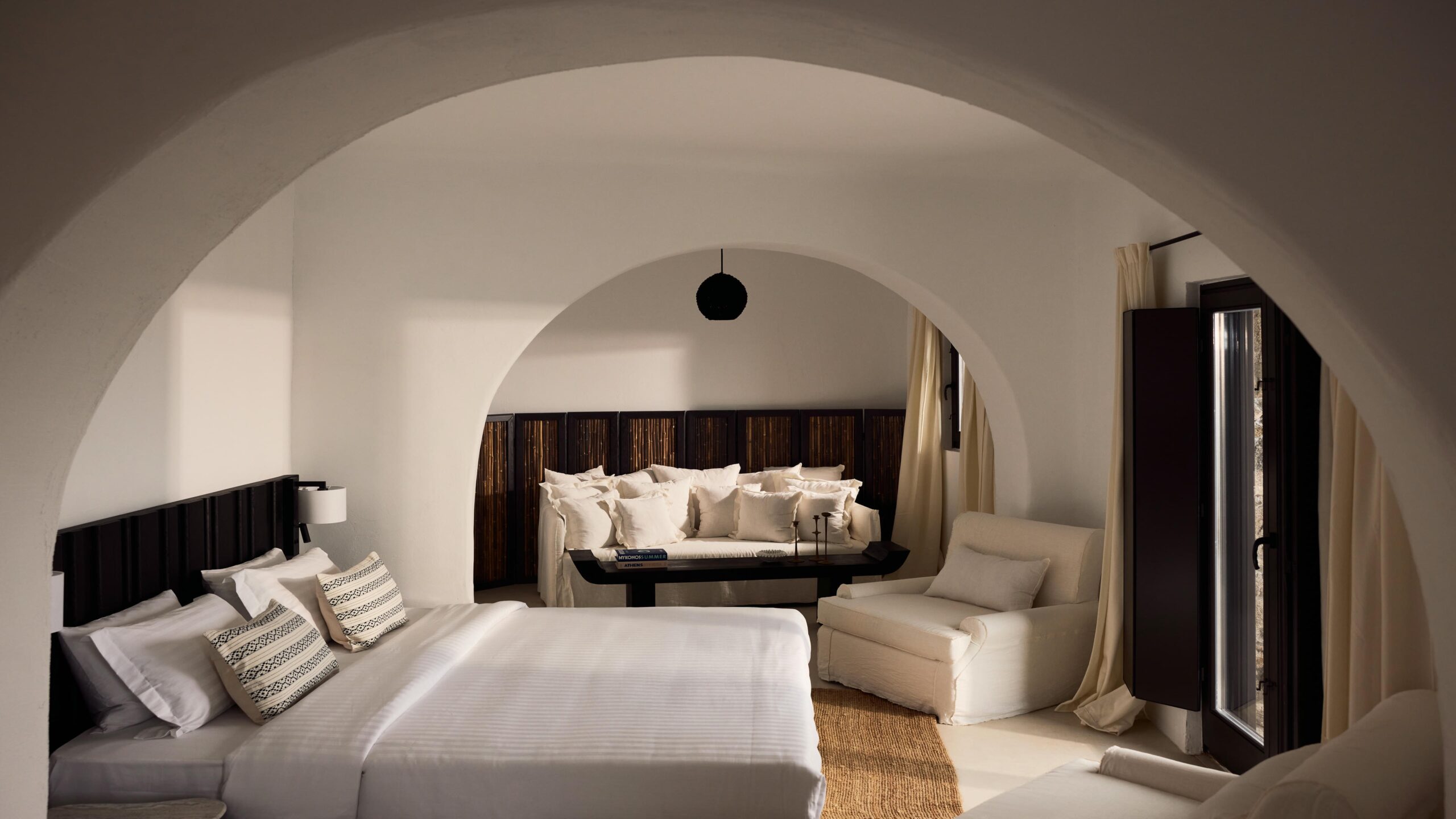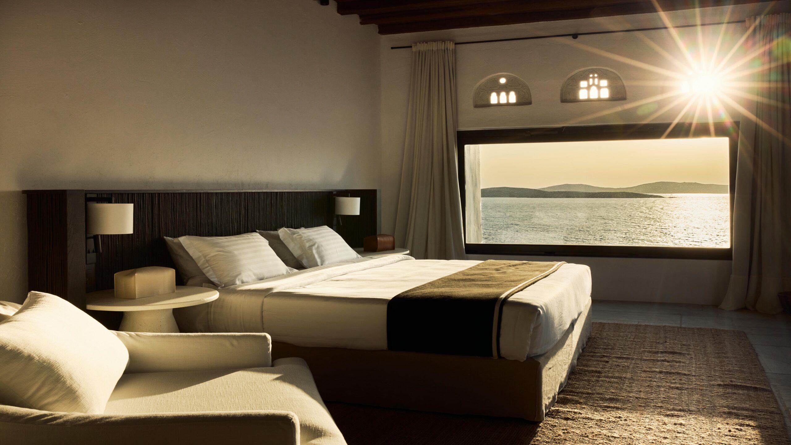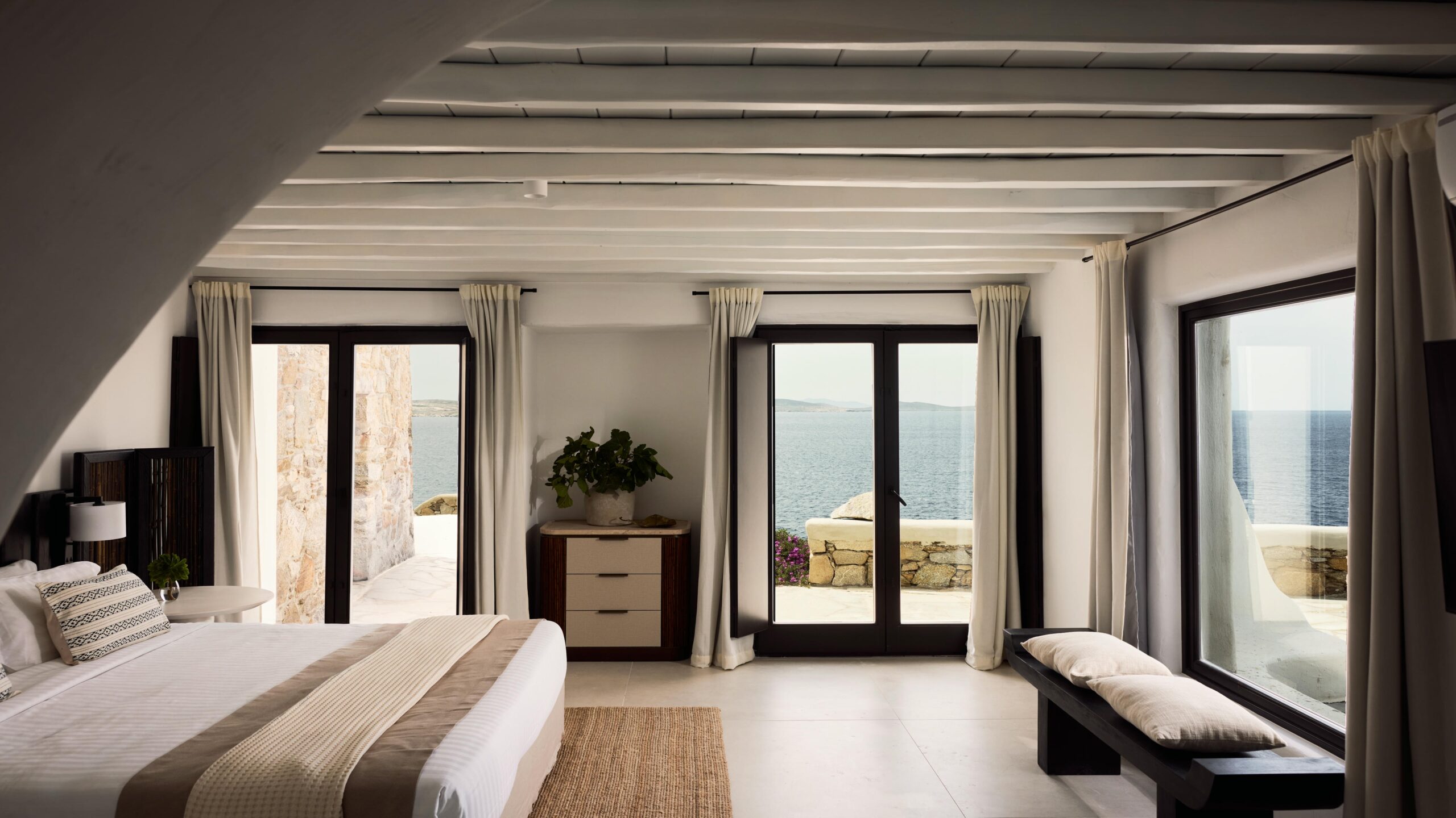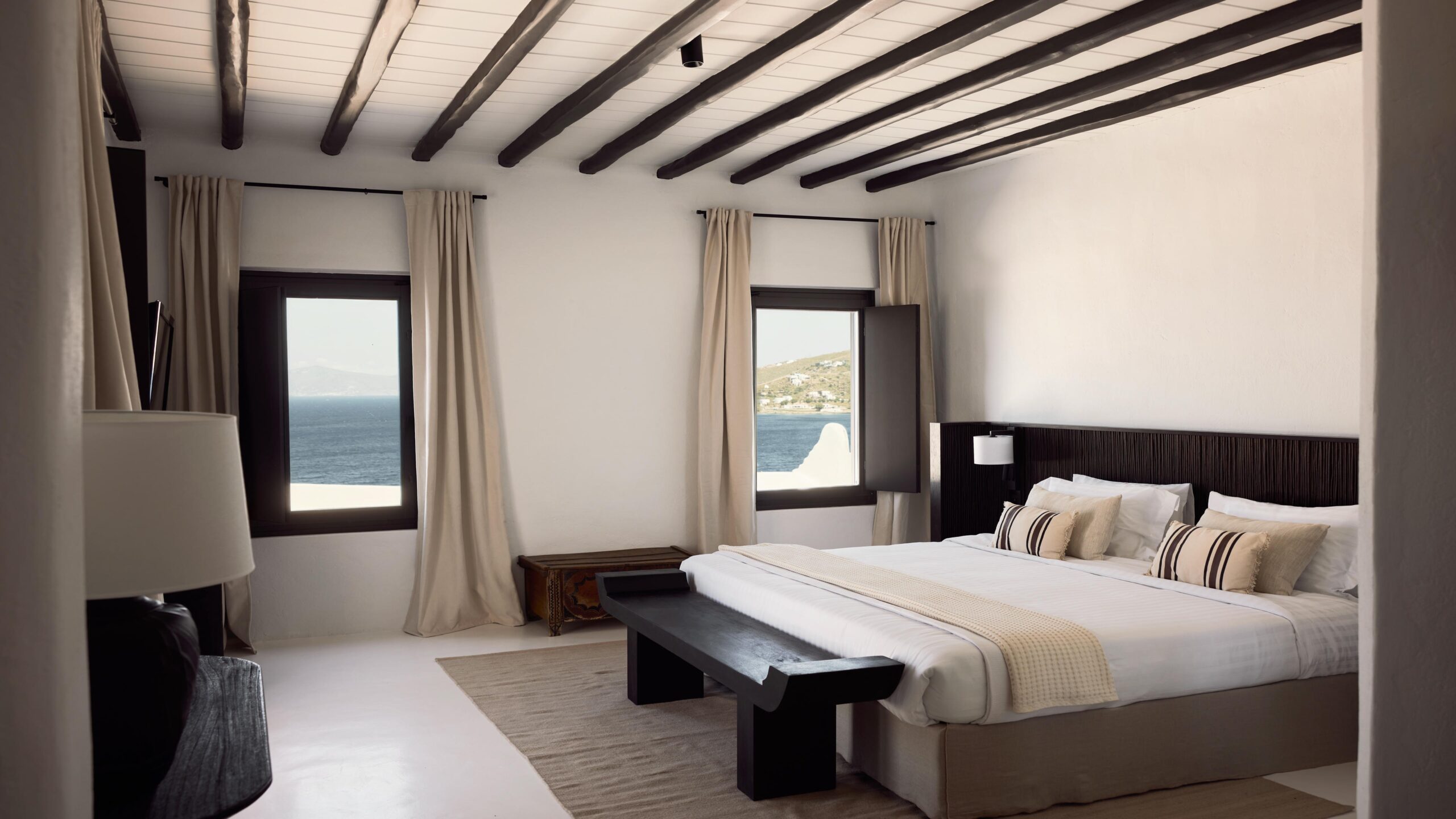 - Room 5: master bedroom with double bed, [A/C], TV, safebox, sitting area and ensuite bathroom with shower | sea & sunset view