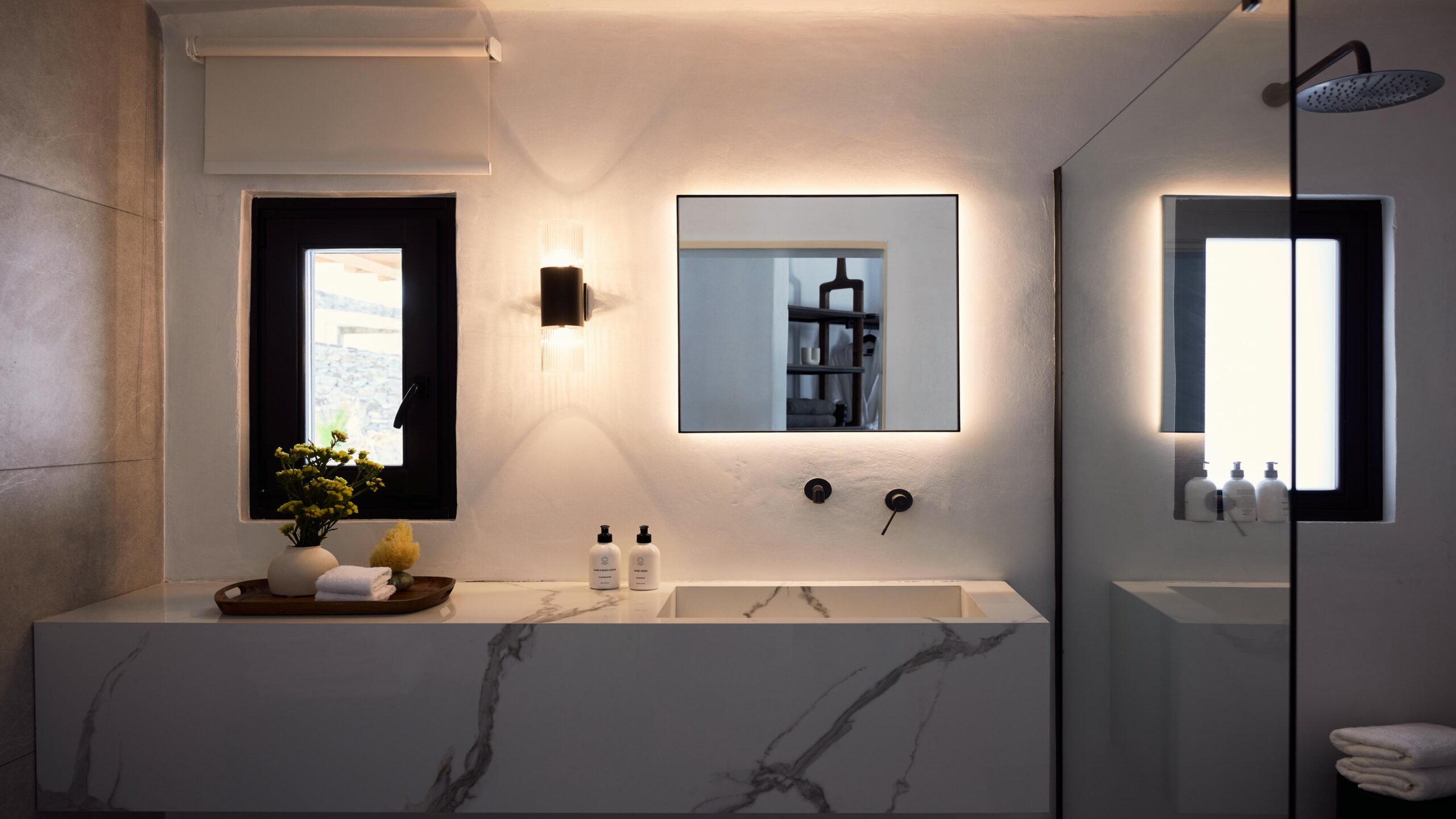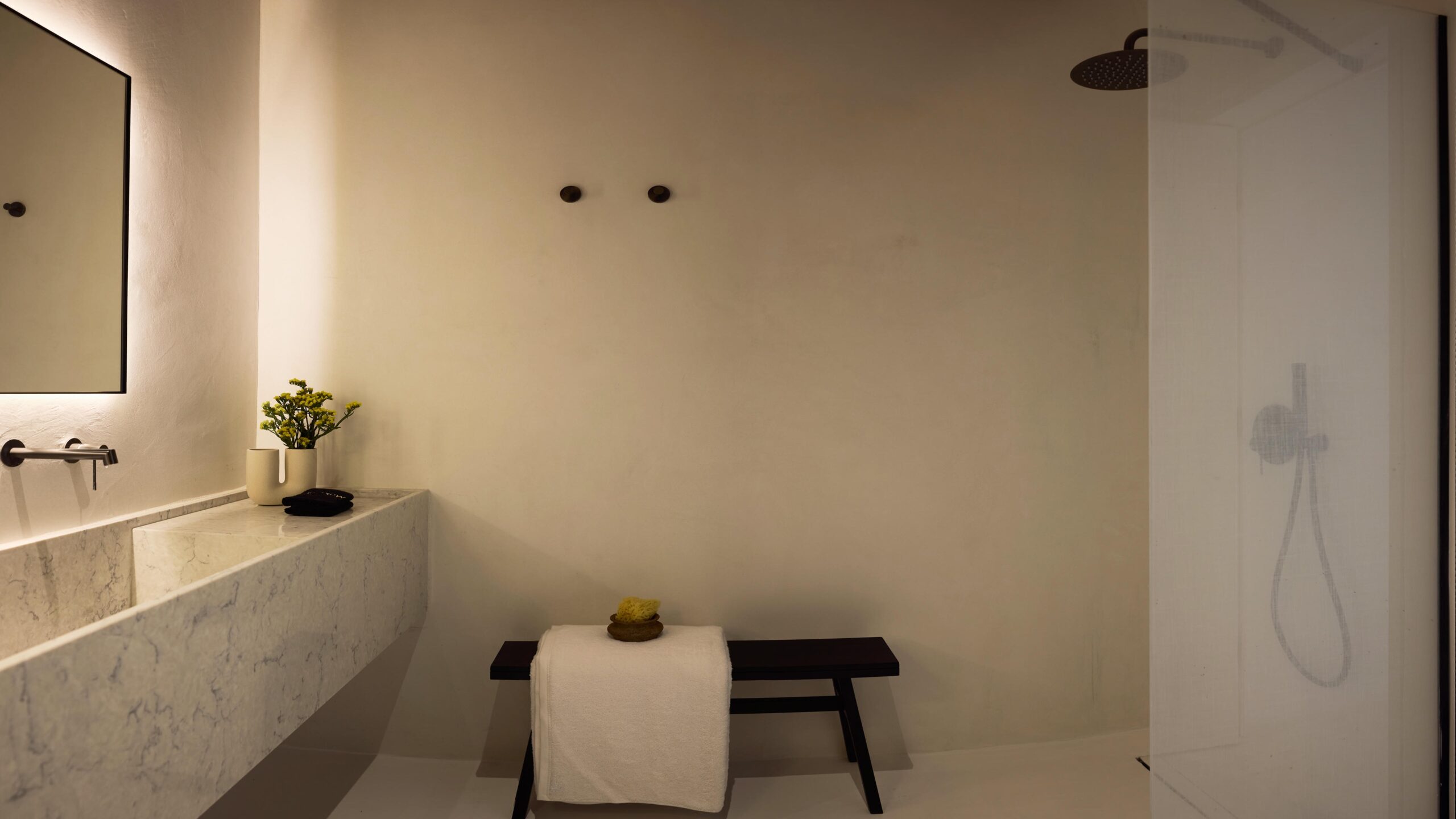 - Room 1: double bedroom with double bed, [A/C], TV, safebox and ensuite bathroom with shower | sea & sunset view