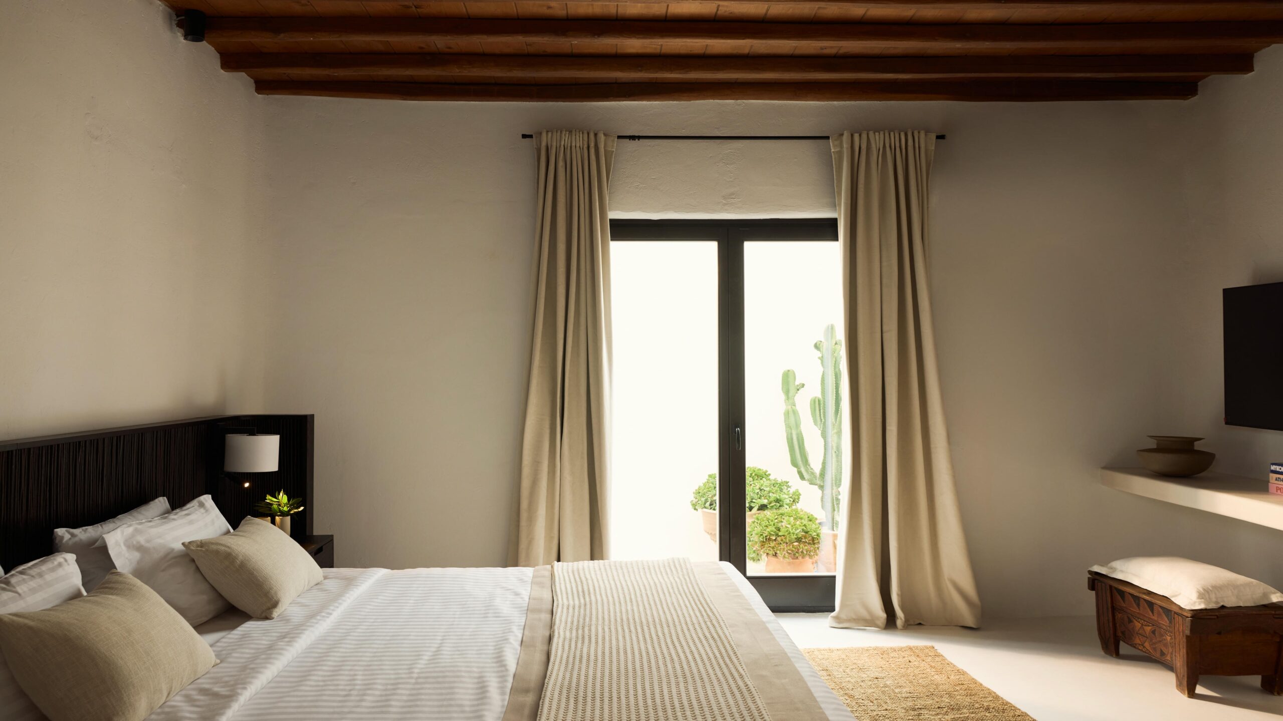 - Room 6: double bedroom with double bed, [A/C], TV, safebox and ensuite bathroom with shower – direct access to outdoor area via balcony doors