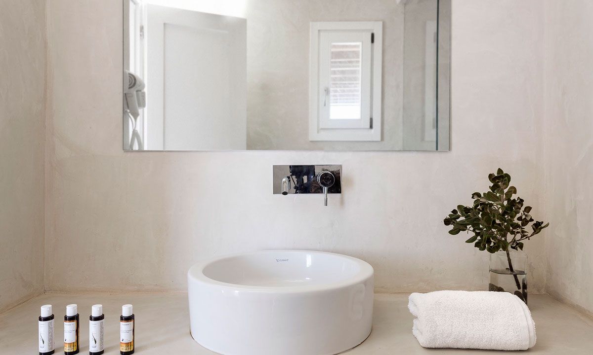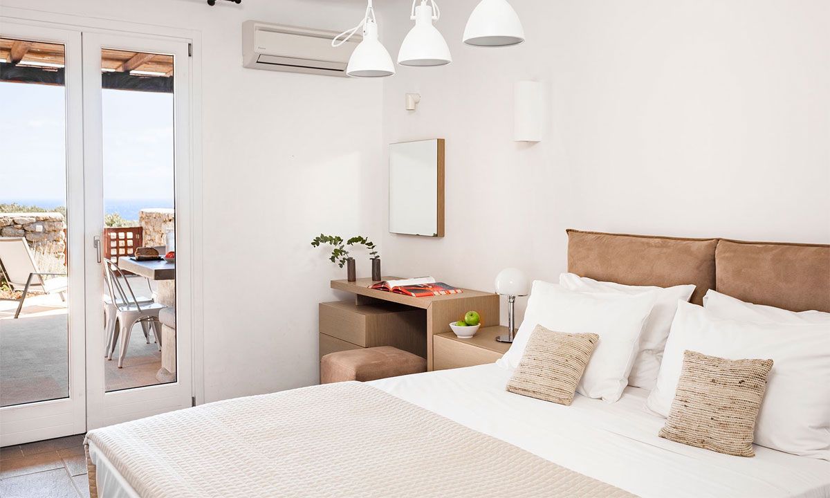 - Room 1: double bed with TV, [A/C] and en-suite bathroom with shower- access to private terrace with lounge area through balcony doors